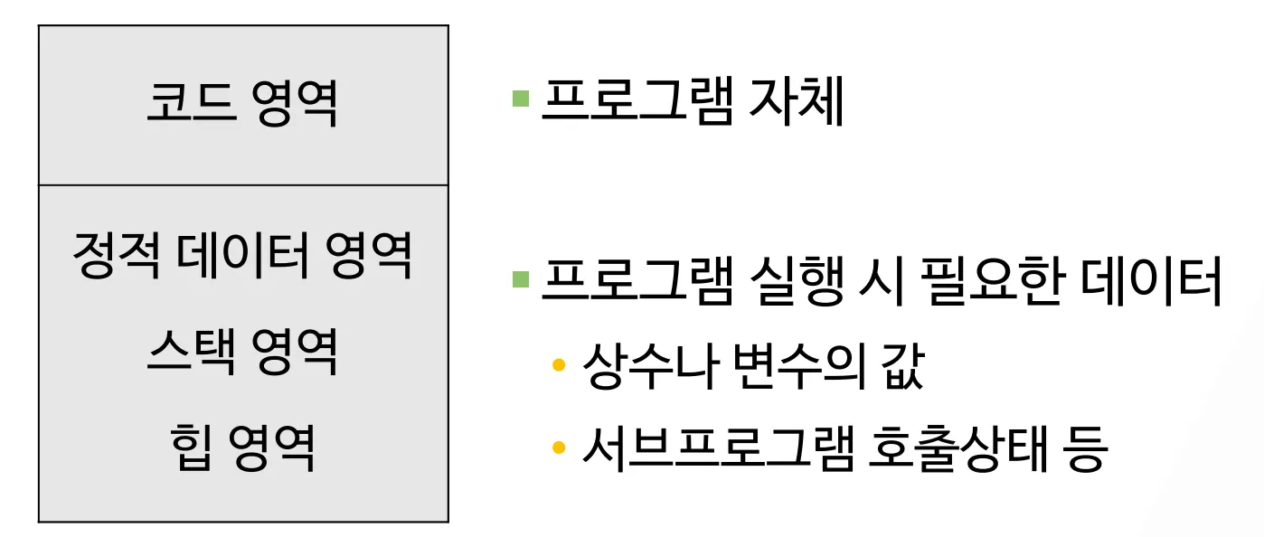 프로그램 실행에 직접적으로 필요한 코드와 데이터