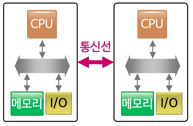 프로세스간 통신이 빠르지만 동기화 문제 발생 가능