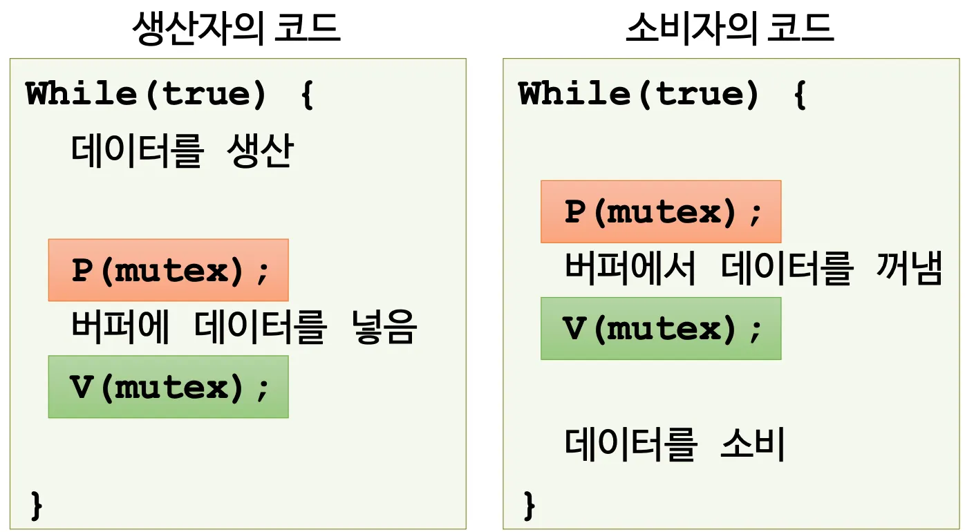 버퍼에 여러 프로세스가 동시에 접근할 수 없도록 상호배제 필요