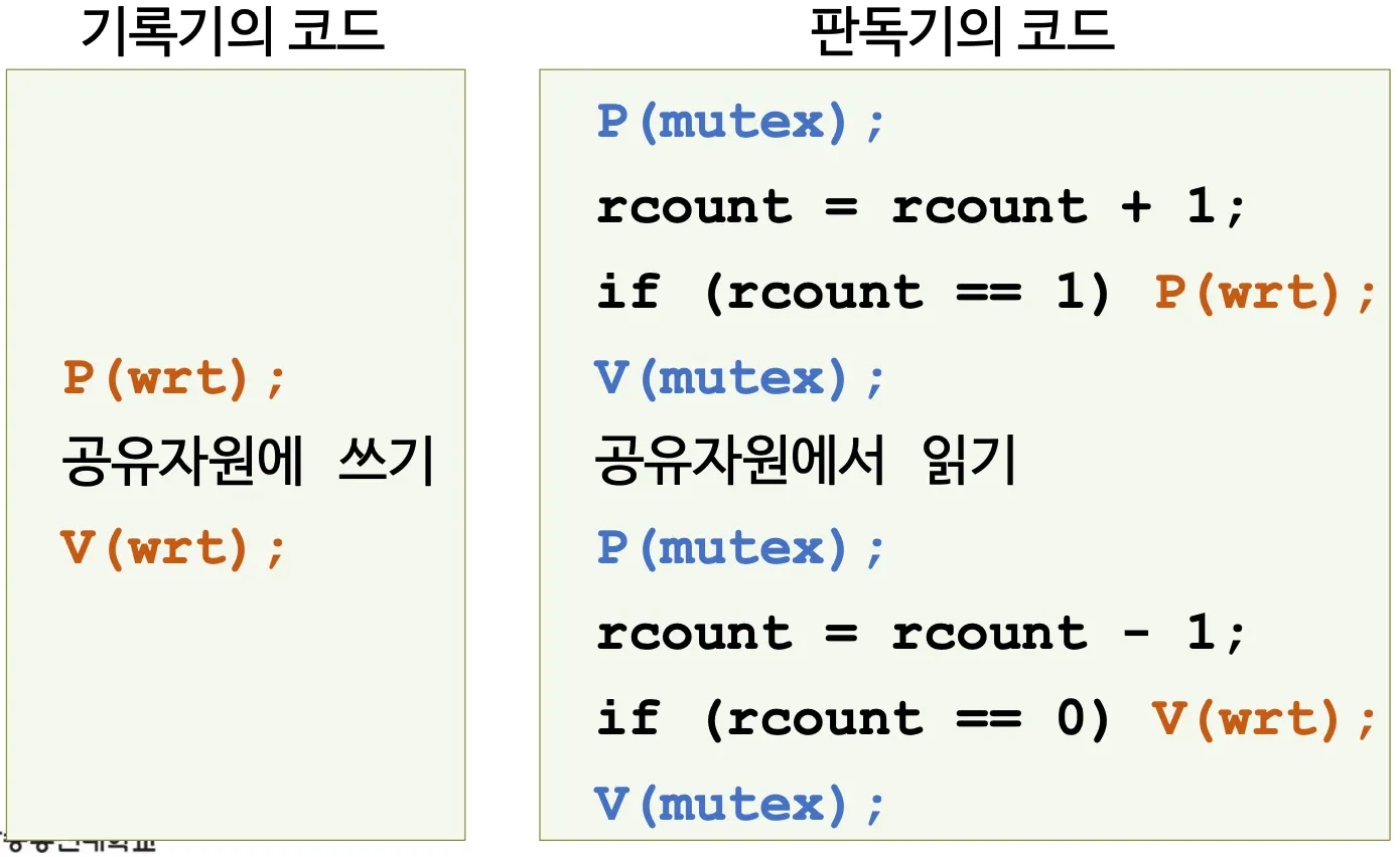 여러 협력 프로세스 사이에 공유자원을 두고 판독기와 기록기의 상황을 다루는 문제