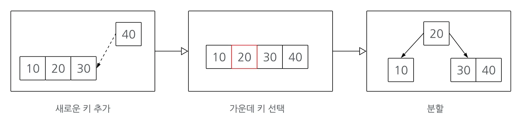 키가 많아져 노드 용량 초과 시 → 노드 분할