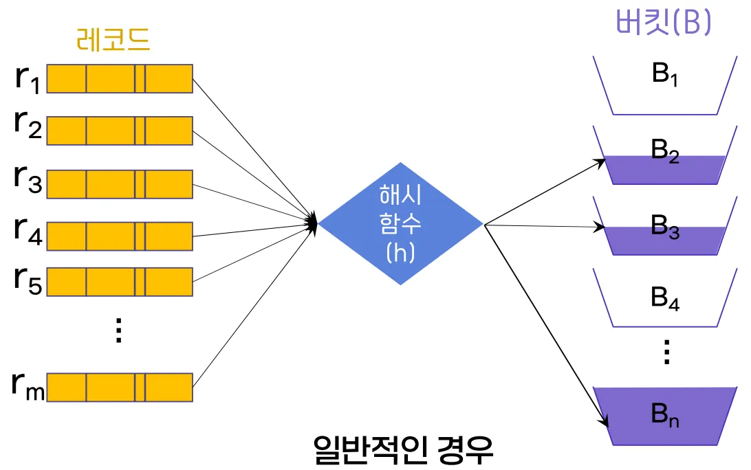 인 경우가 발생하기 때문에 버킷 m에 저장된 모든 레코드 탐색하여 선택하는 과정 필요 (선형탐색)