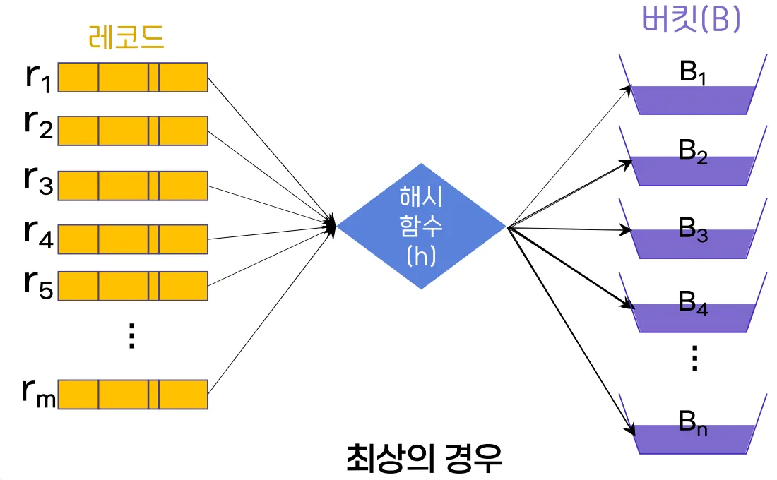 해시 함수가 모든 키를 고르게 분산시킨 이상적인 경우