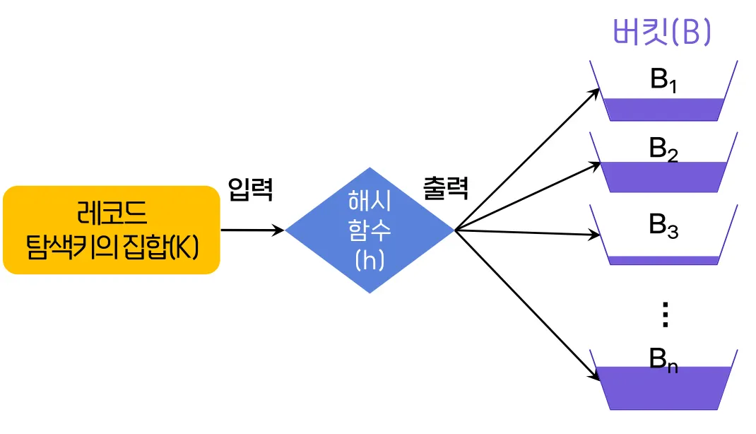 탐색 키를 해시 함수를 통해 버킷 주소로 변환해 데이터를 빠르게 접근하는 기법