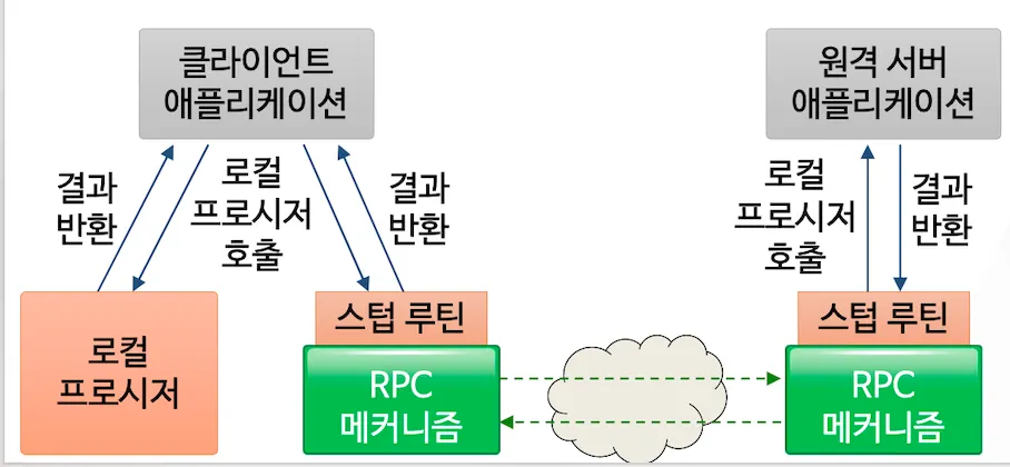 네트워크로 연결된 다른 컴퓨터에 있는 프로시저(함수)를 마치 로컬에서 호출하는 것처럼 실행할 수 있게 해주는 기법