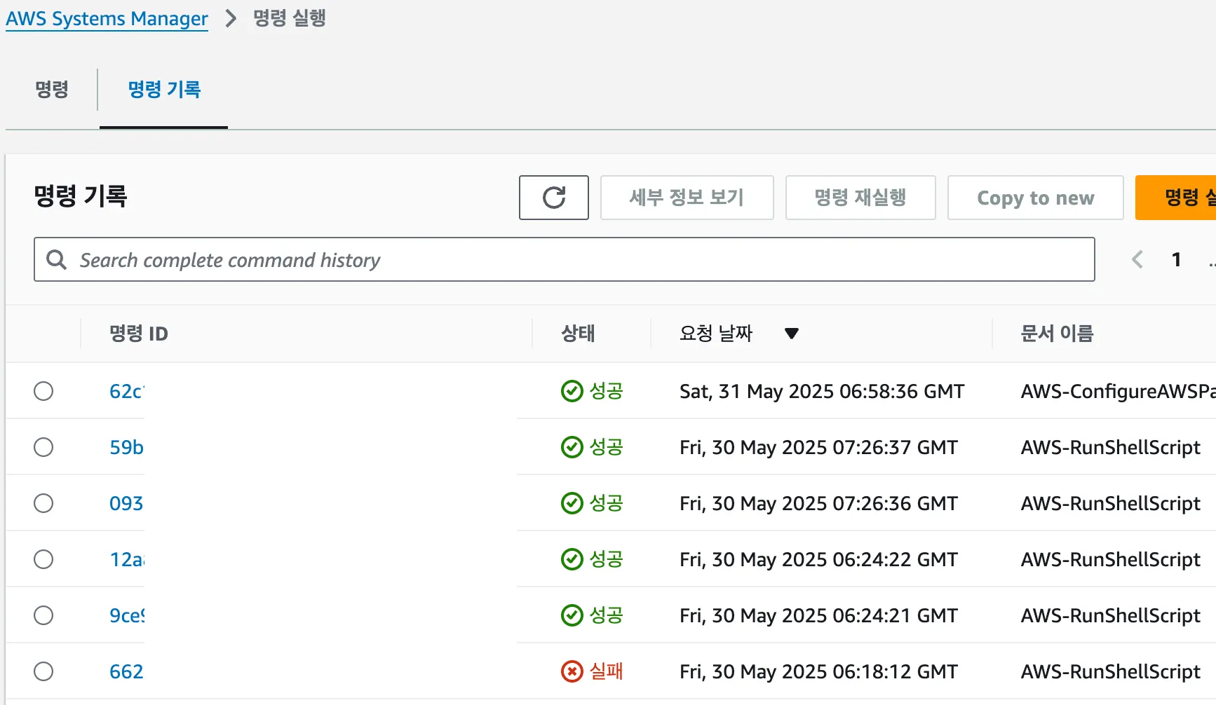 문제: IAM 역할에 SSM 명령을 실행 권한이 없어 권한 부족 에러 발생