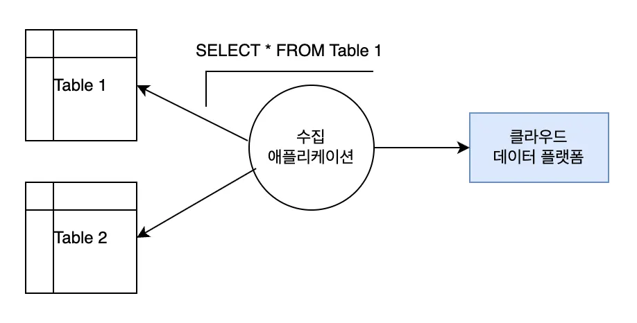 가장 기본적인 수집 방식으로, SQL 쿼리를 통해 데이터를 조회하고 플랫 파일 형태로 저장