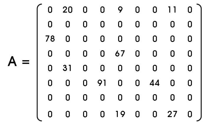 0인 값을 모두 저장하면 메모리 낭비가 되므로, 0이 아닌 값만 따로 모아서 저장