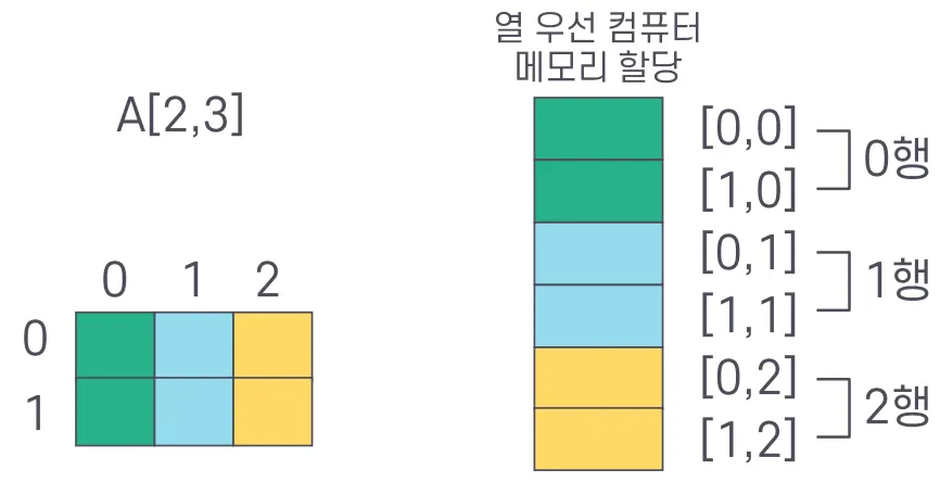 세로의 1차원 배열 단위로 메모리 영역을 우선 할당