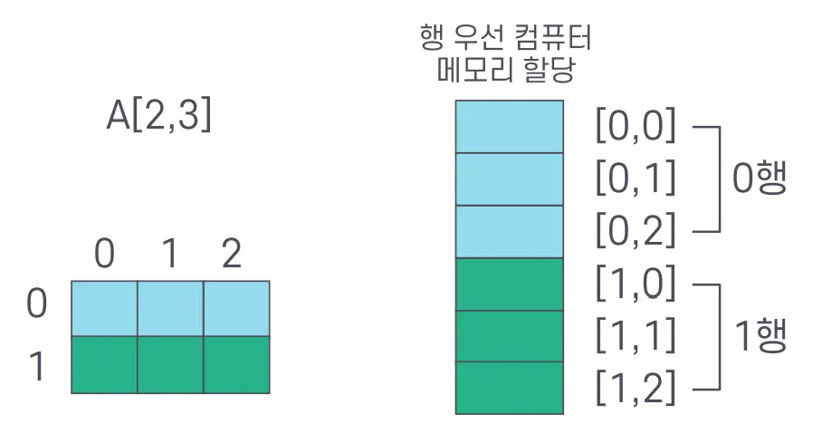 가로의 1차원 배열 단위로 메모리 영역을 우선 할당