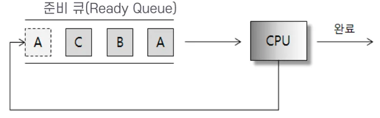 예: 라운드 로빈(Round Robin) 스케줄링은 큐를 이용해 순서대로 CPU 할당