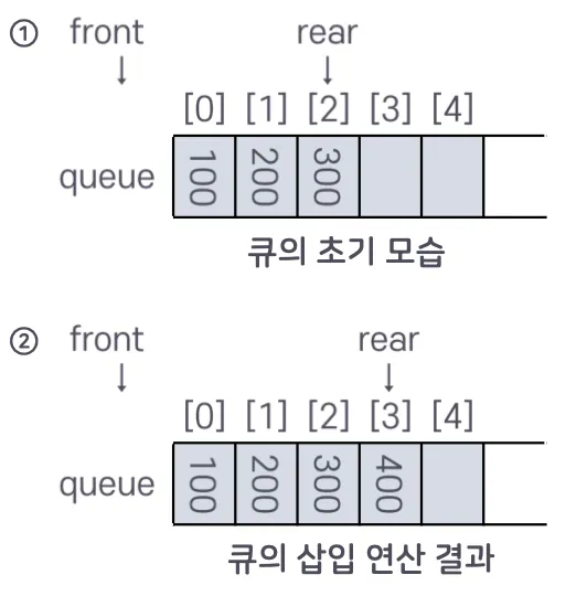 변수 rear 초기값은 큐의 공백 상태를 나타내는 -1 로 시작