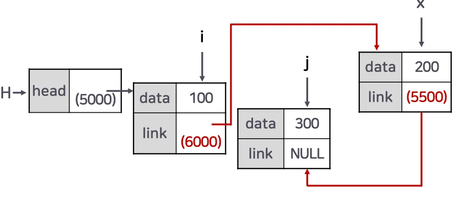 배열과 달리, 원소 이동 없이 포인터만 변경해서 삽입 가능