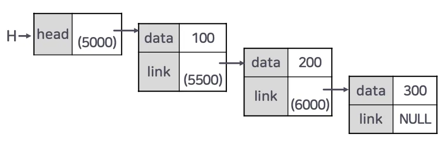 포인터(Link): 다음 노드의 메모리 주소(위치)