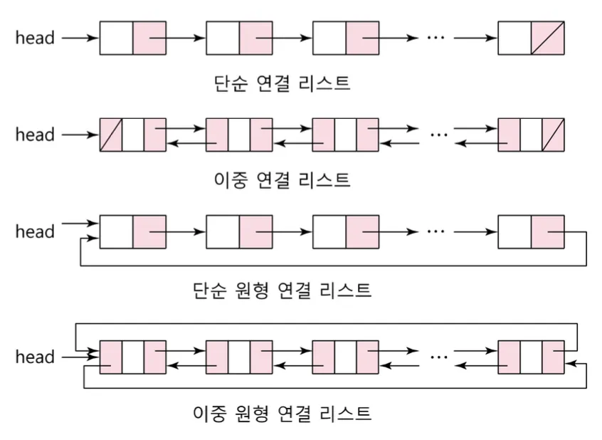 → 이런 문제점을 보완하기 위해 원형 연결 리스트와 이중 연결 리스트 나옴
