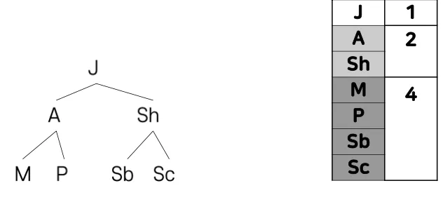 인덱스를 이용해 부모-자식 관계를 계산할 수 있음