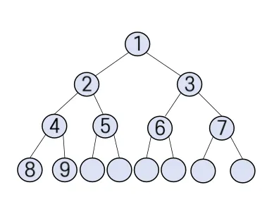 완전 이진 트리 (complete binary tree): 트리의 마지막 레벨을 제외한 모든 레벨이 완전히 채워져 있고 마지막 레벨의 노드들은 왼쪽부터 차례대로 채워진 이진 트리